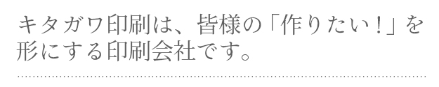 「とりあえず何かやる時はキタガワ印刷さんに声かけておけばいいから-。」これは、お客様よりいただいた嬉しいお言葉です。新しい企画をやる時でも、作るものが決まっている場合、何も決まっていない場合があります。株式会社キタガワ印刷では長い歴史の中で、どのような時にどんなものが必要か、それを作るにはどうしたらいいのか、ということが自然と身についています。どうぞお気軽にお問い合わせください。